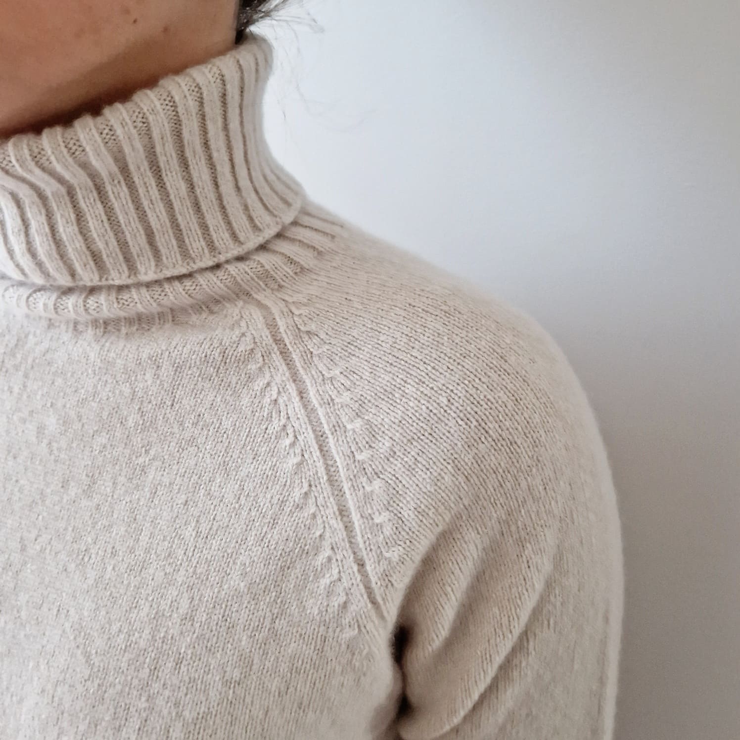 Maglione a collo alto in Cashmere e Lana, color beige, disponibile in 3 diverse misure.