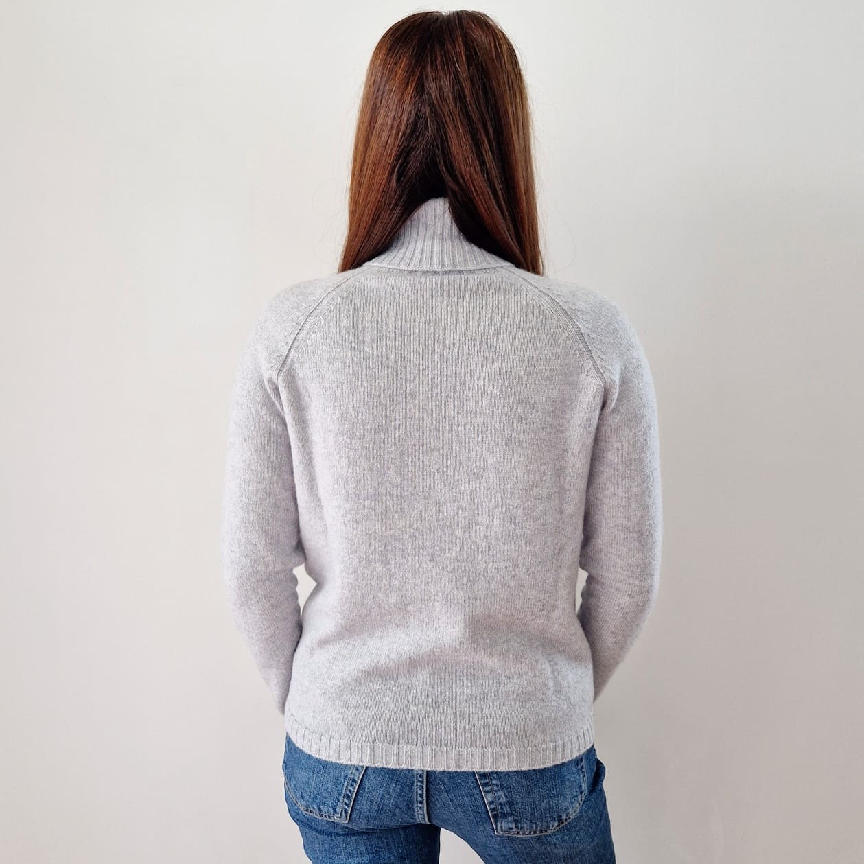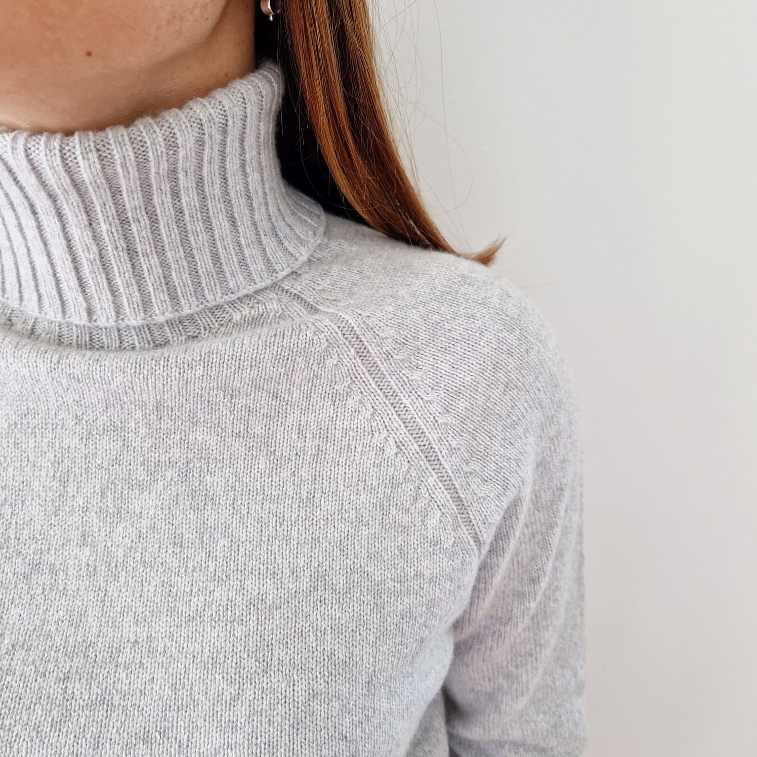 Maglione a collo alto in Cashmere e Lana, color grigio perla, disponibile in 3 diverse misure.