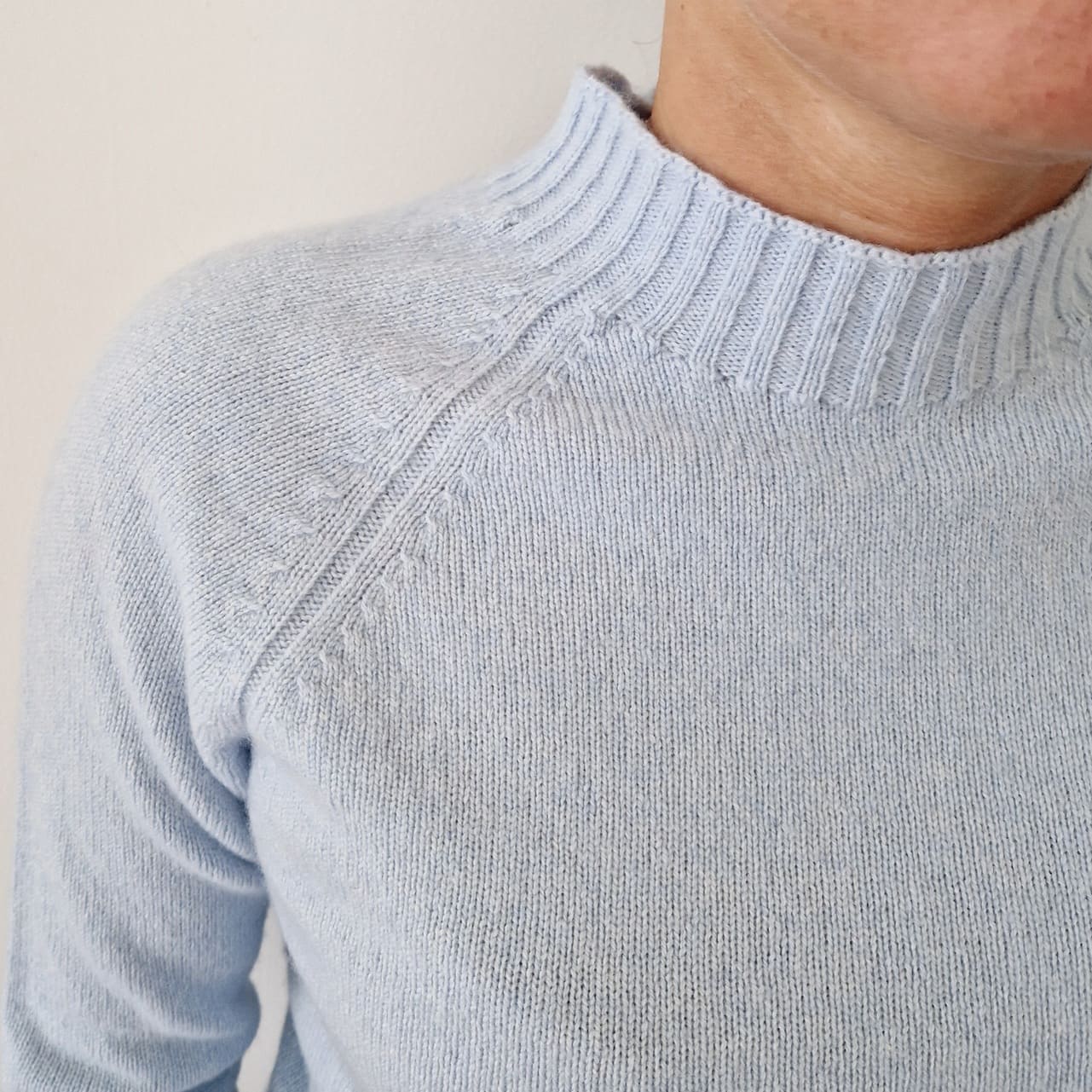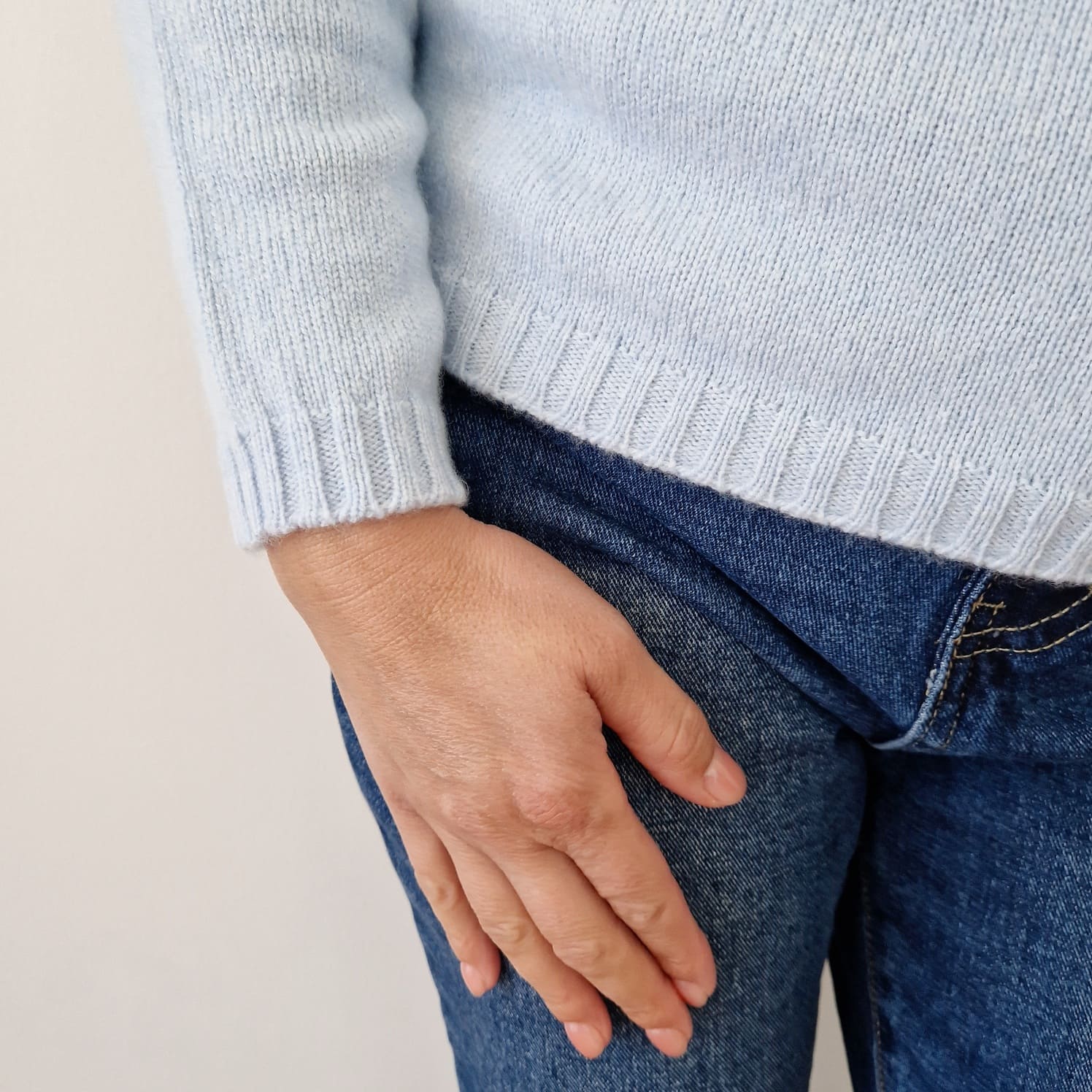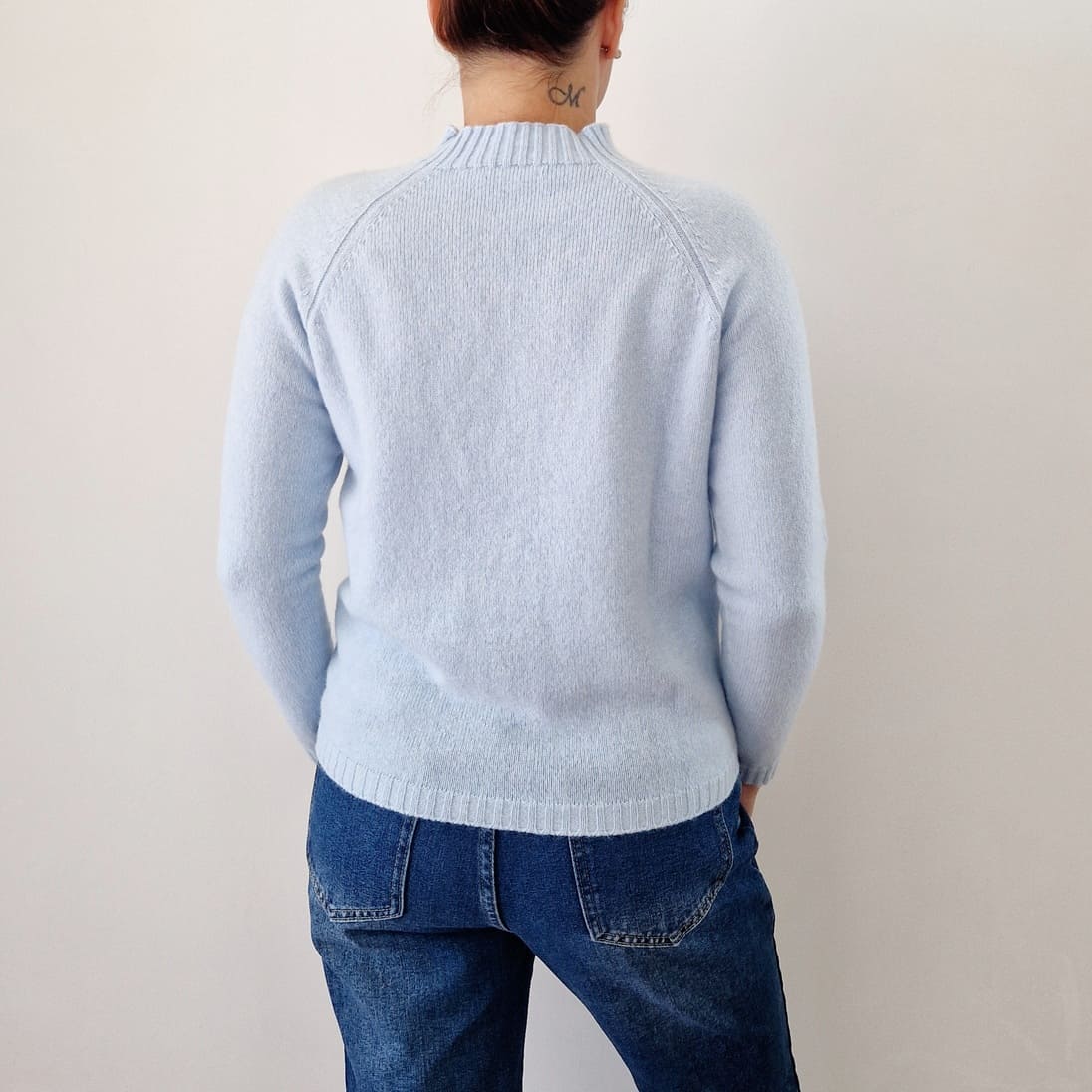 Maglione a mezzo collo in Cashmere e Lana, color azzurro tenue, disponibile in 3 diverse misure.