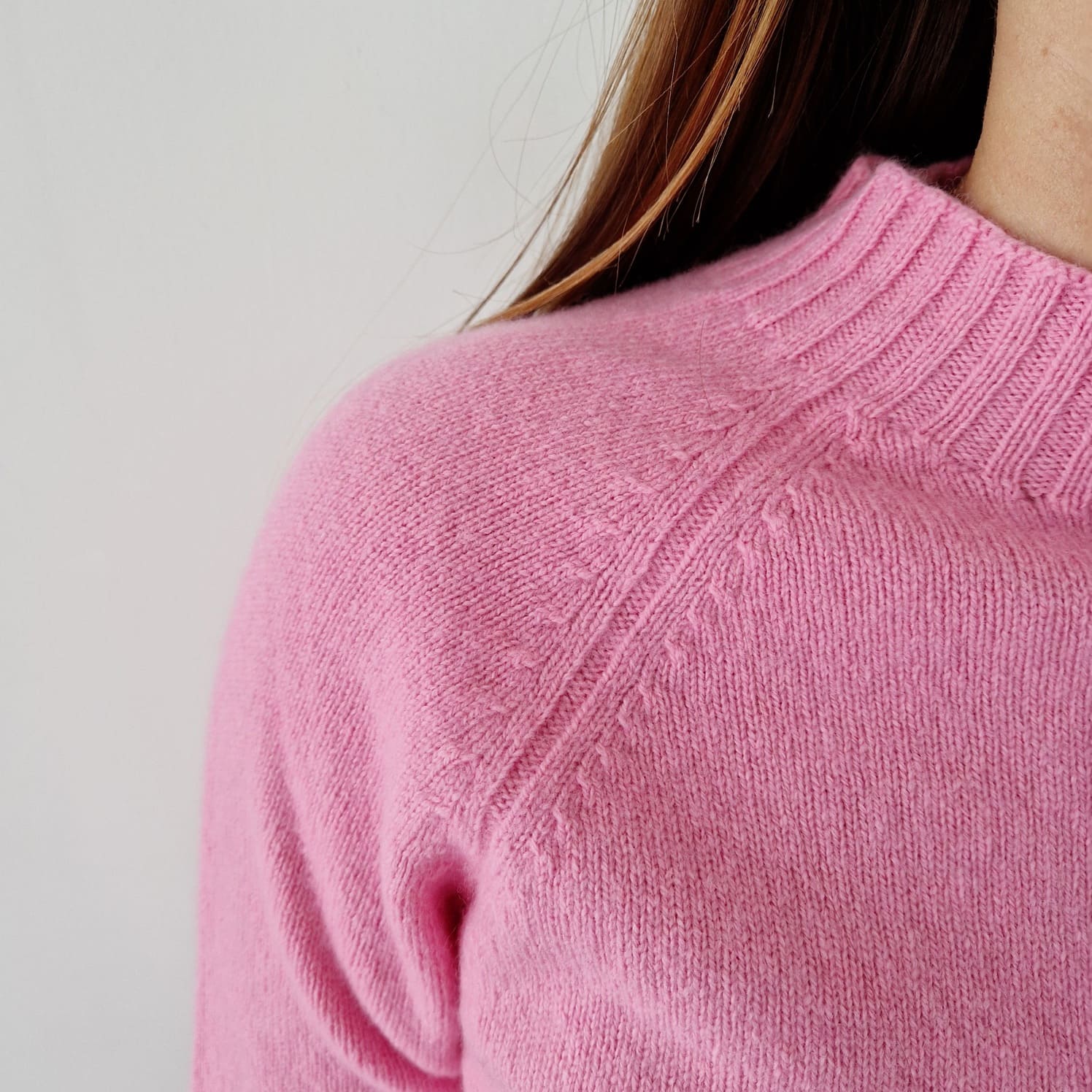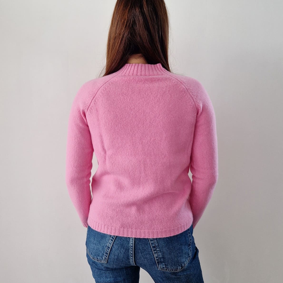 Maglione a mezzo collo in Cashmere e Lana, color rosa big babol, disponibile in 3 diverse misure.