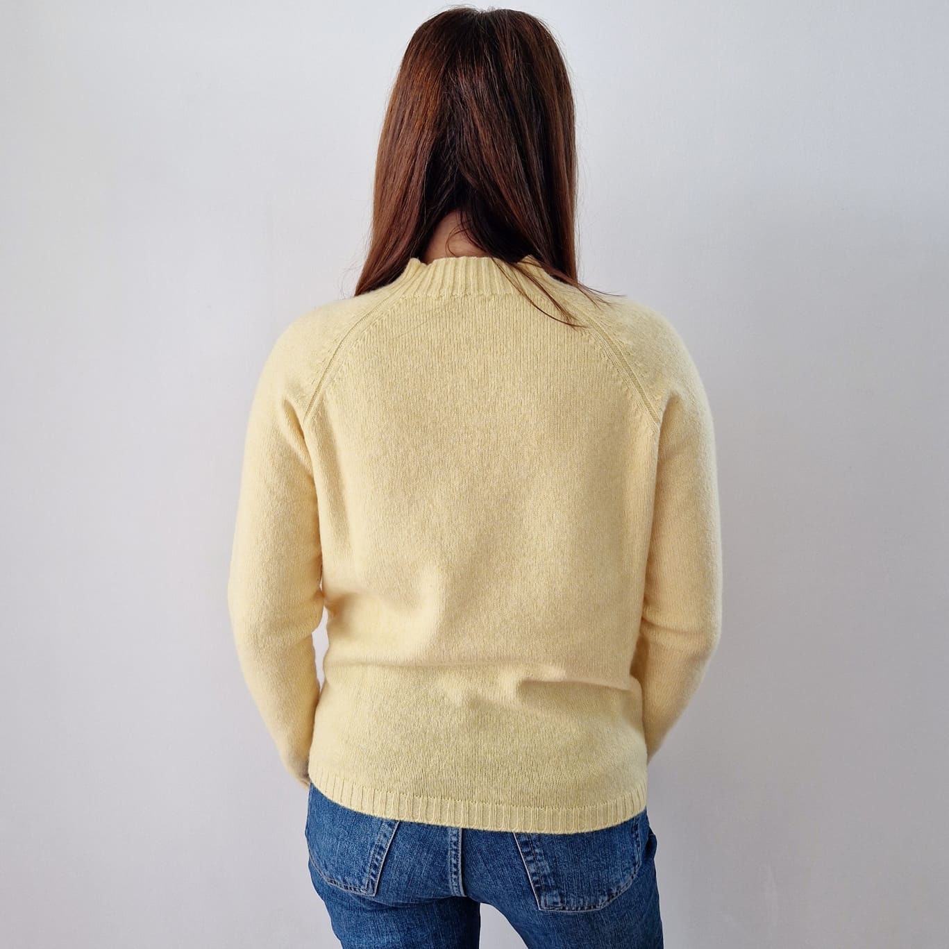Maglione a mezzo collo in Cashmere e Lana, color giallo canarino, disponibile in 3 diverse misure.