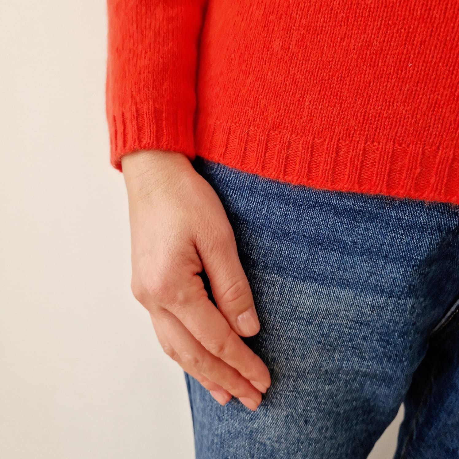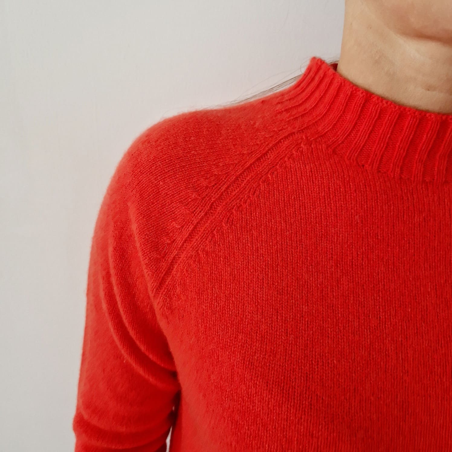 Maglione a mezzo collo in Cashmere e Lana, color rosso corallo, disponibile in 3 diverse misure.