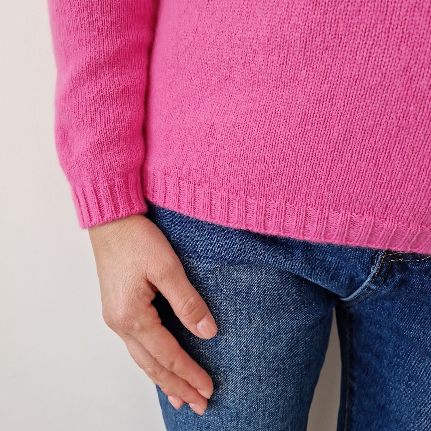 Maglione a mezzo collo in Cashmere e Lana, color fucsia, disponibile in 3 diverse misure.