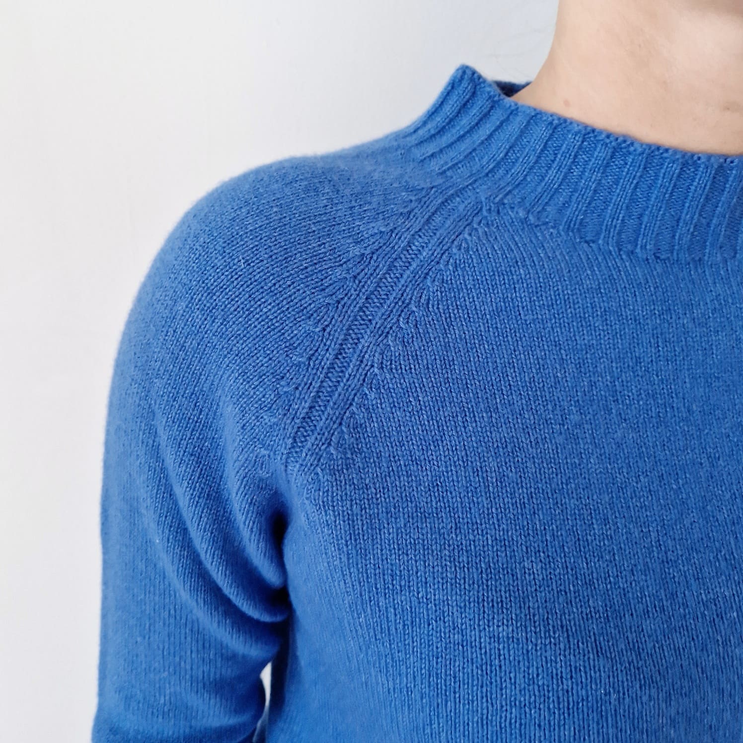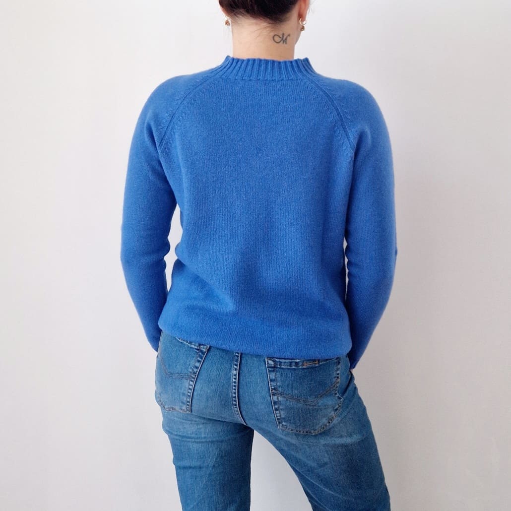 Maglione a mezzo collo in Cashmere e Lana, color bluette, disponibile in 3 diverse misure.