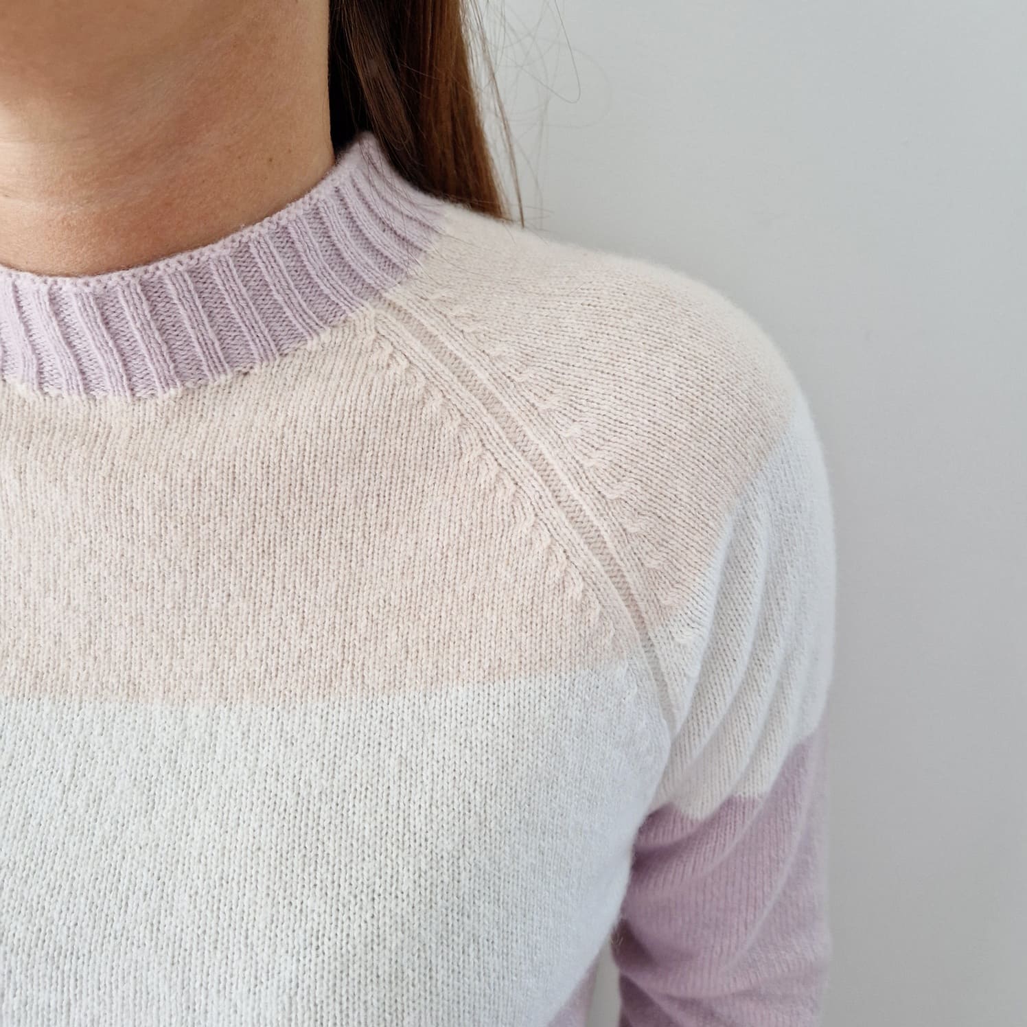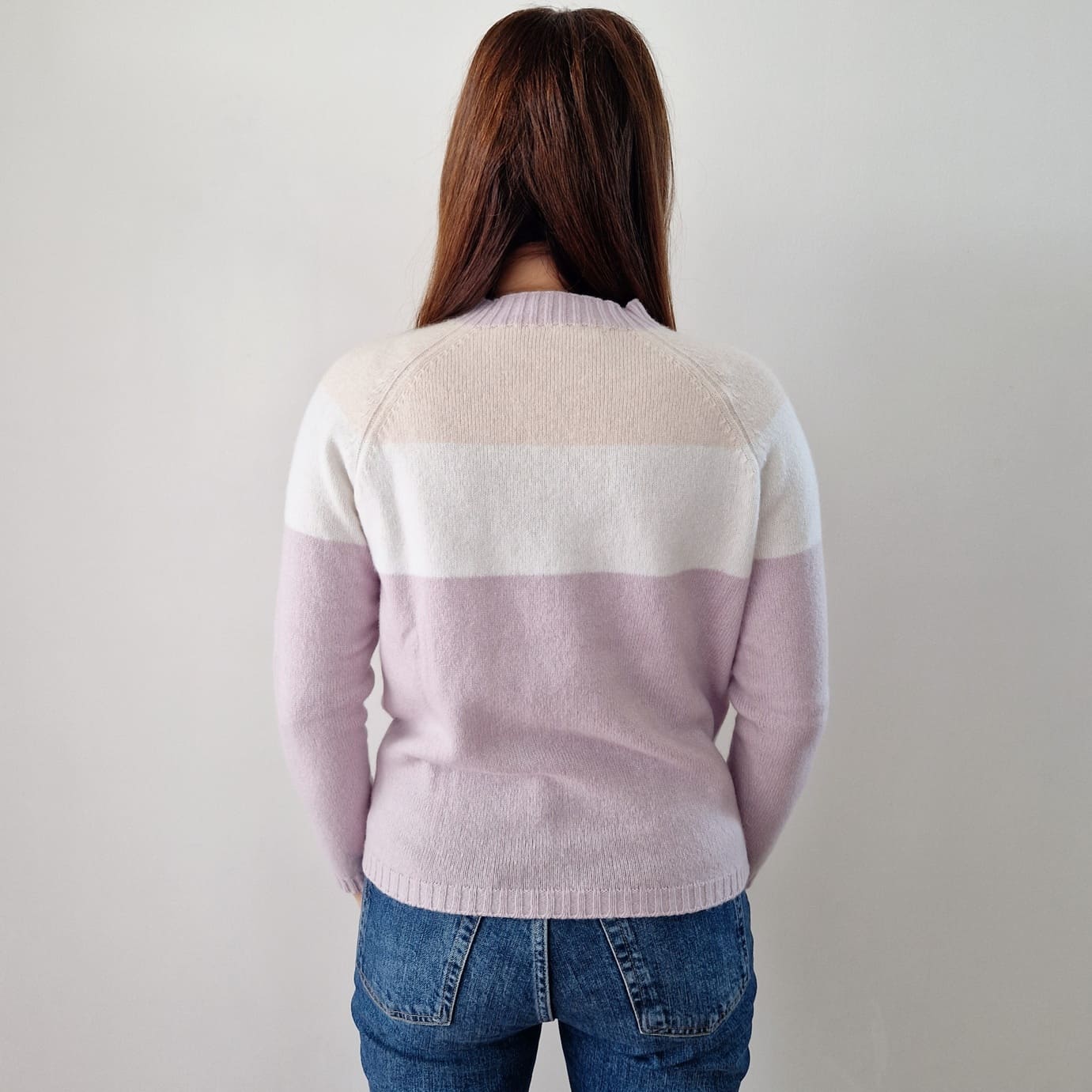 Maglione a mezzo collo in Cashmere e Lana a strisce orizzontali Rosa, Panna e Lilla, disponibile in 3 diverse misure.
