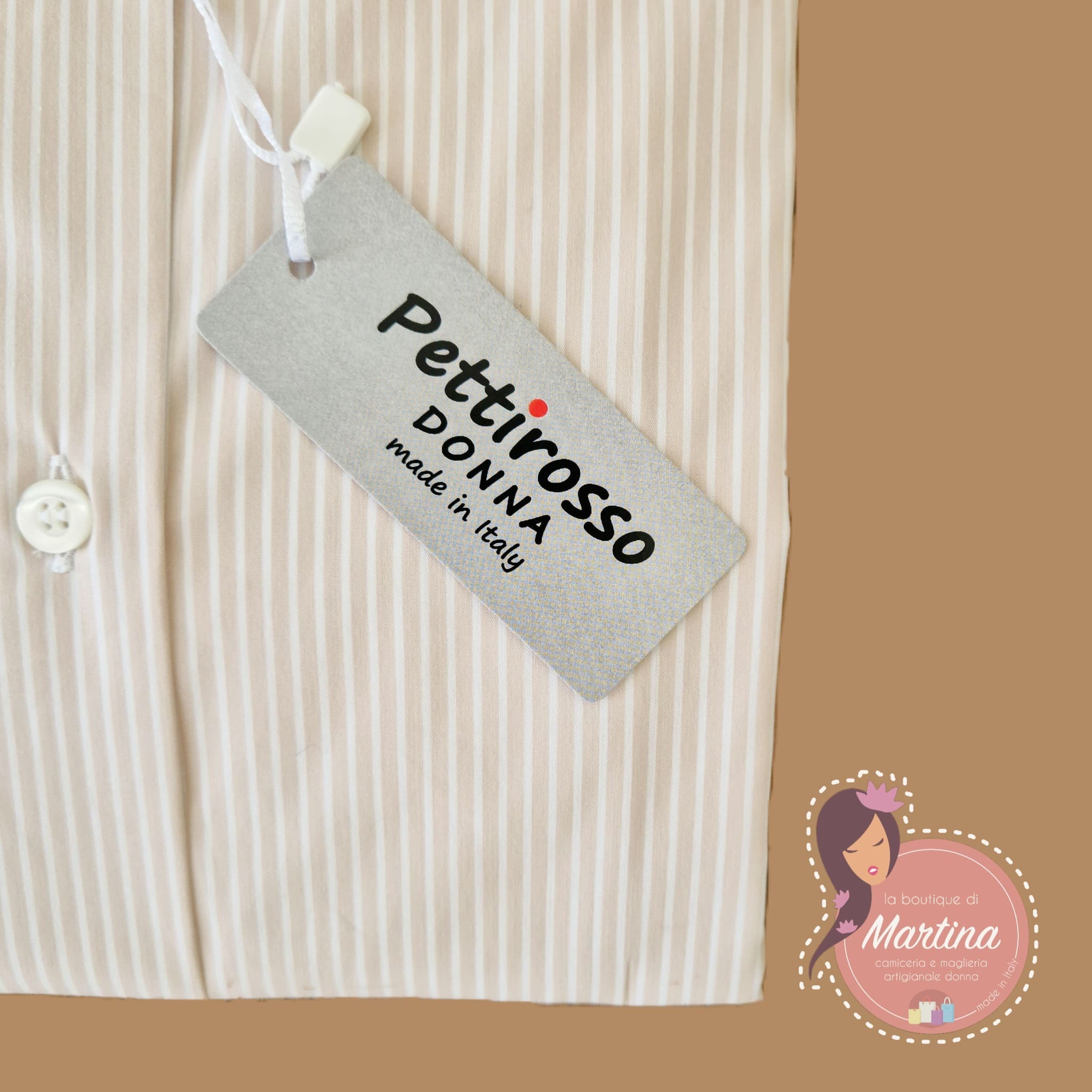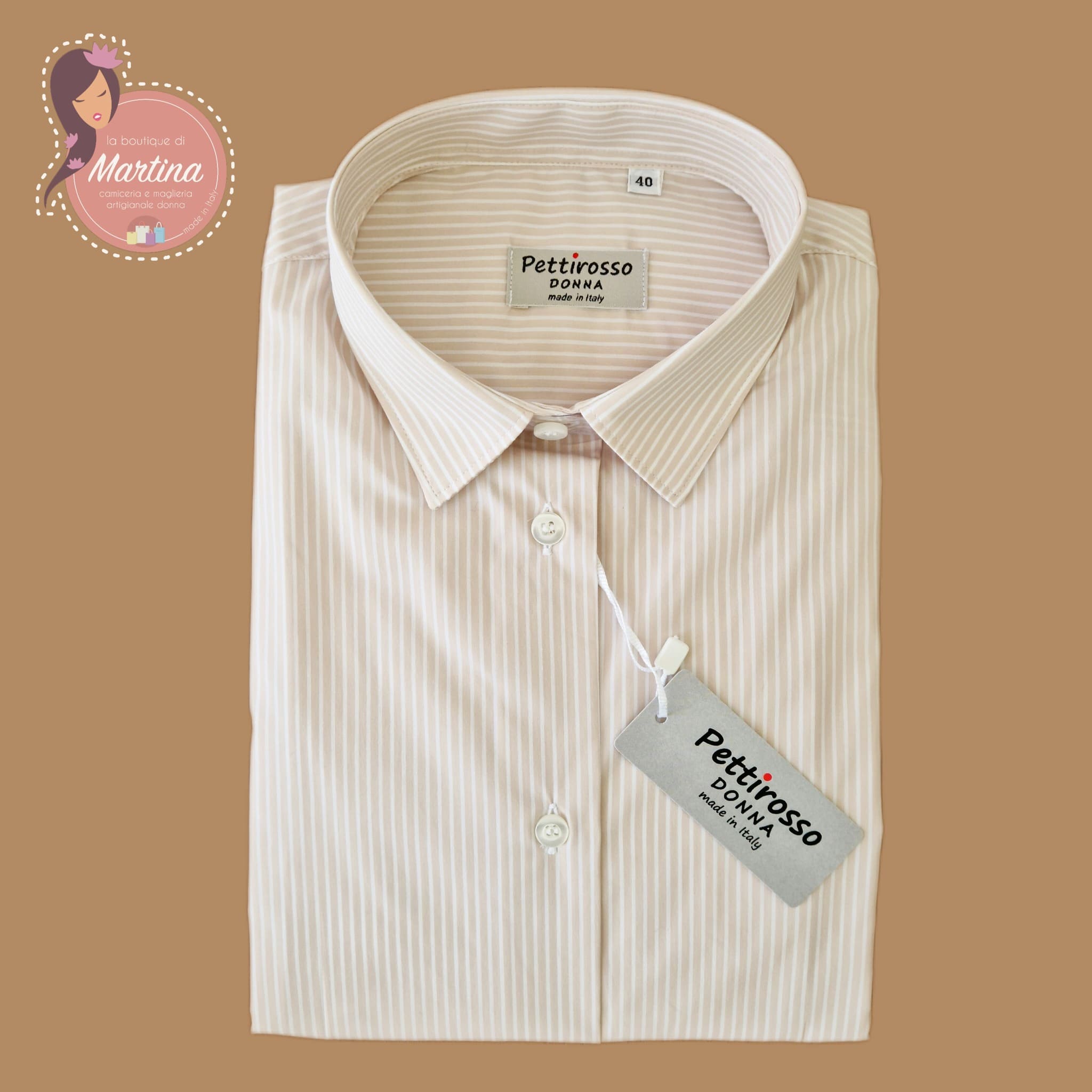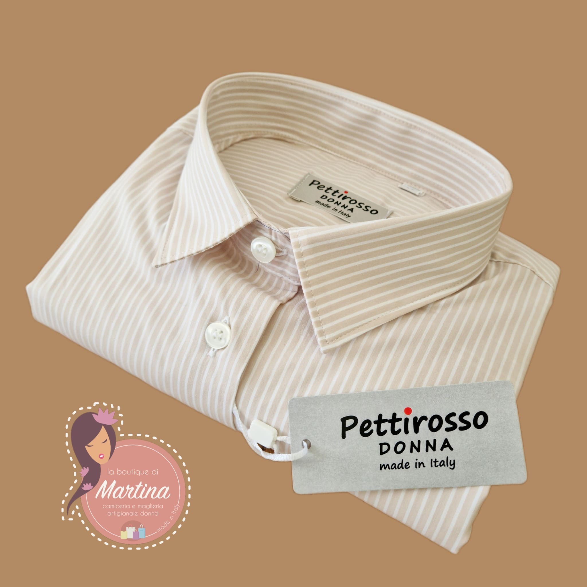Linea PETTIROSSO DONNA serie Classic in cotone Popeline, rigato beige/bianco, tessuto NATURALE di FACILE e VELOCE STIRATURA.