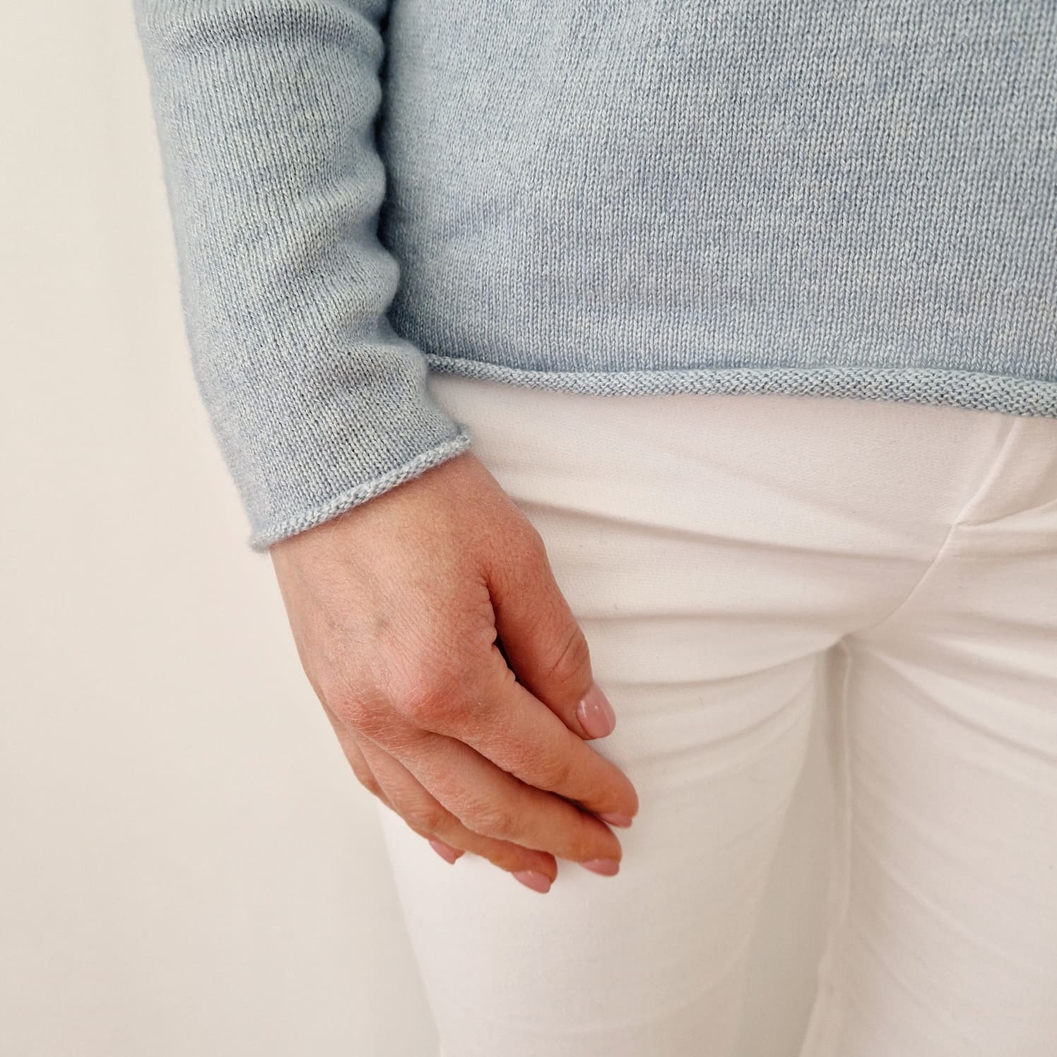 Girocollo leggero a tubolare in pregiati CASHMERE e SETA, color azzurro polvere, disponibile in 4 misure dalla S alla XL.