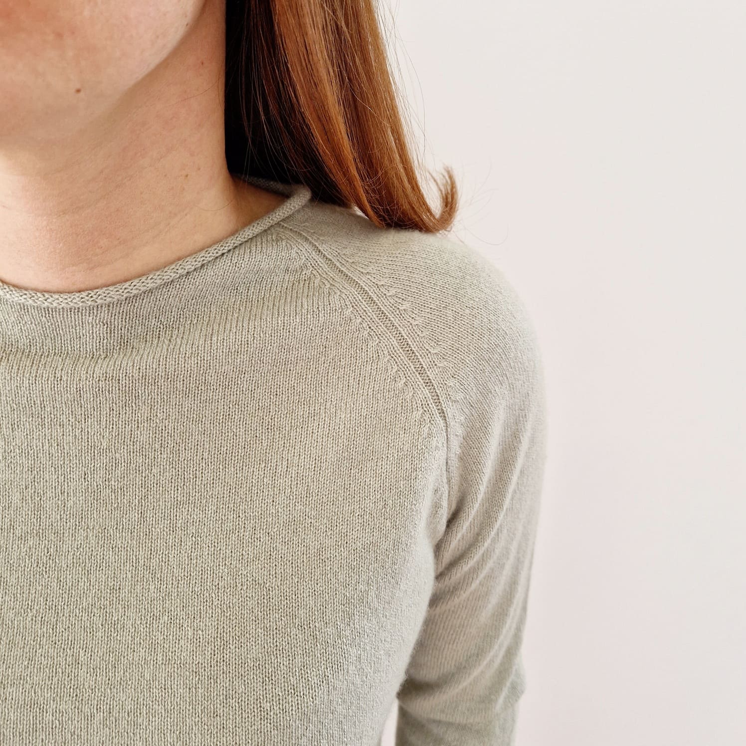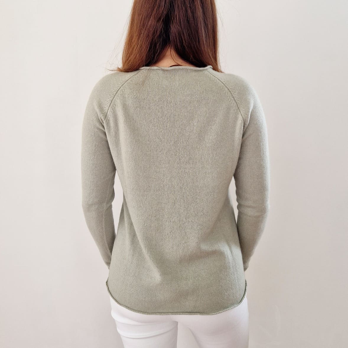 Girocollo leggero a tubolare in pregiati CASHMERE e SETA, color verde salvia, disponibile in 4 misure dalla S alla XL.
