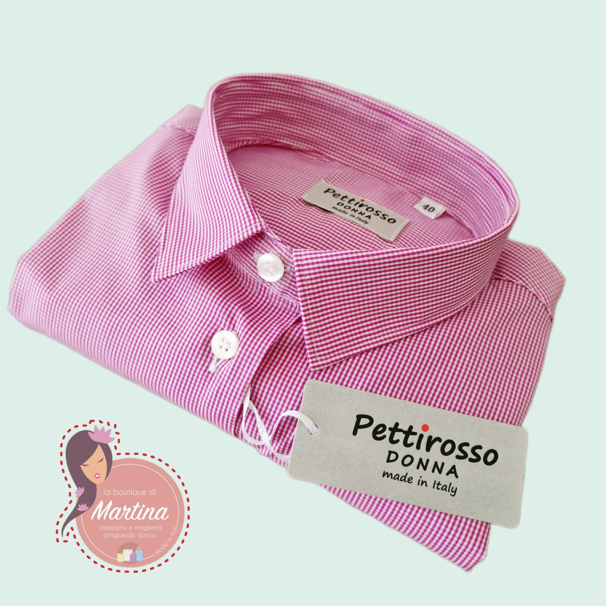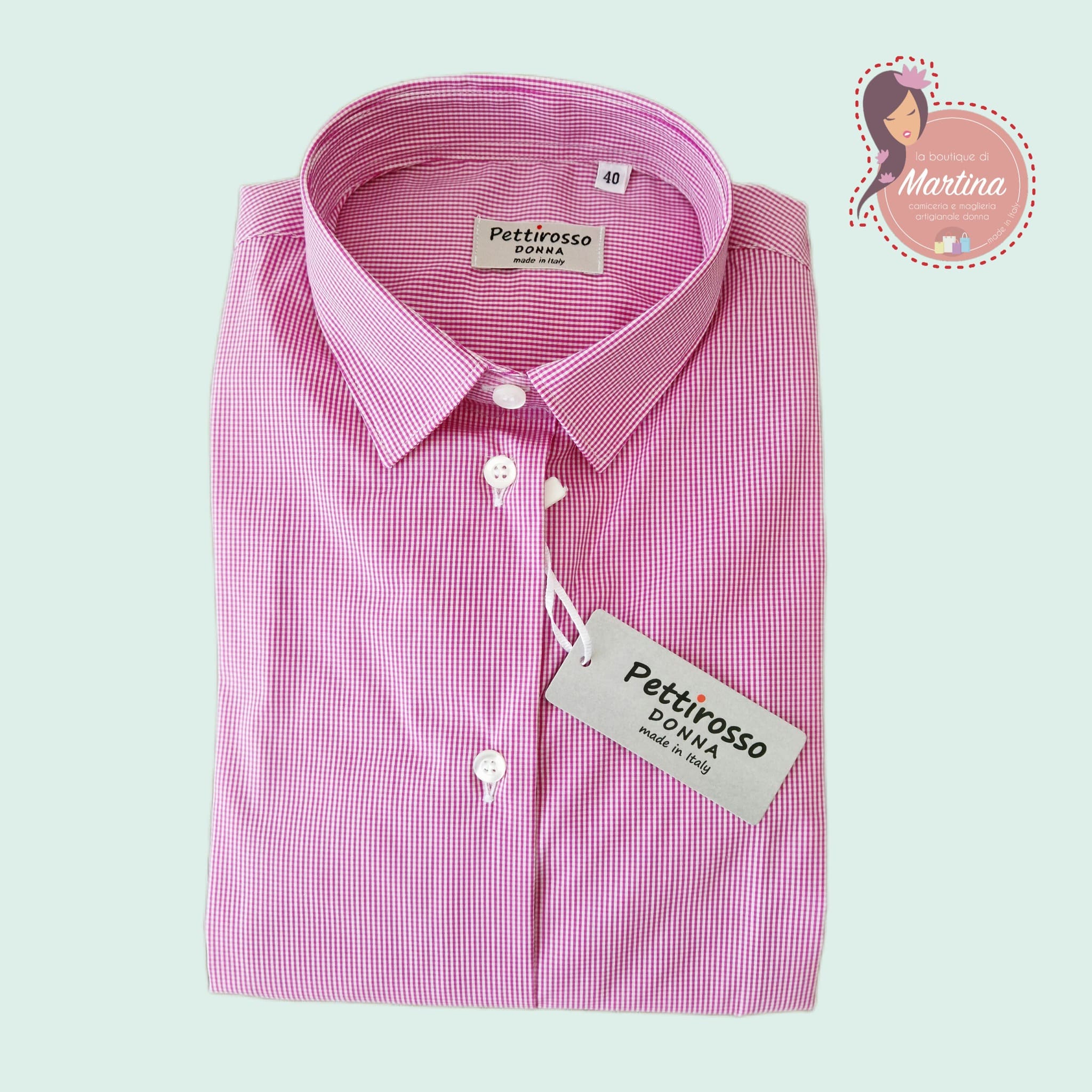 Linea PETTIROSSO DONNA serie Classic in cotone popeline, quadretto vichy bordeaux, tessuto NATURALE di FACILE e VELOCE STIRATURA.